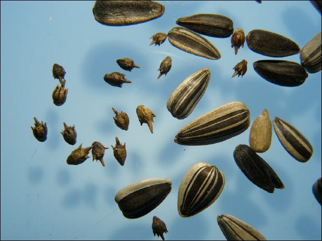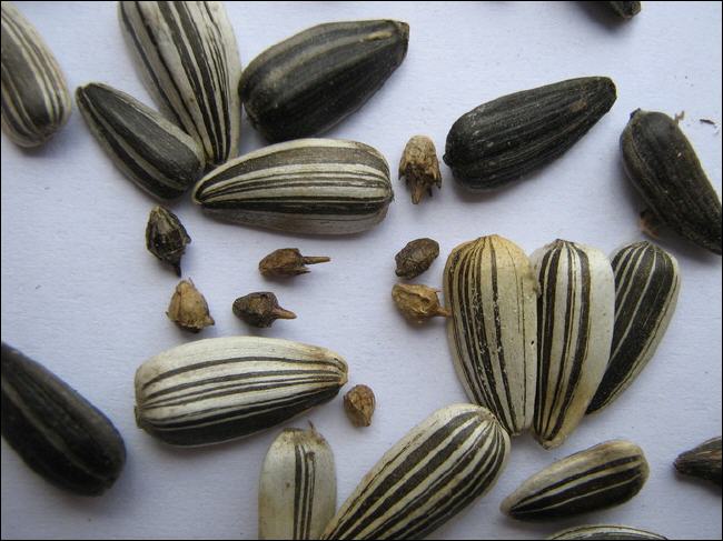 Zweckentfremdung von Sonnenblumensamen-Vogelfutter als Saatgut (auch als 25 kg-Säcke im Agrarhandel vertrieben) |