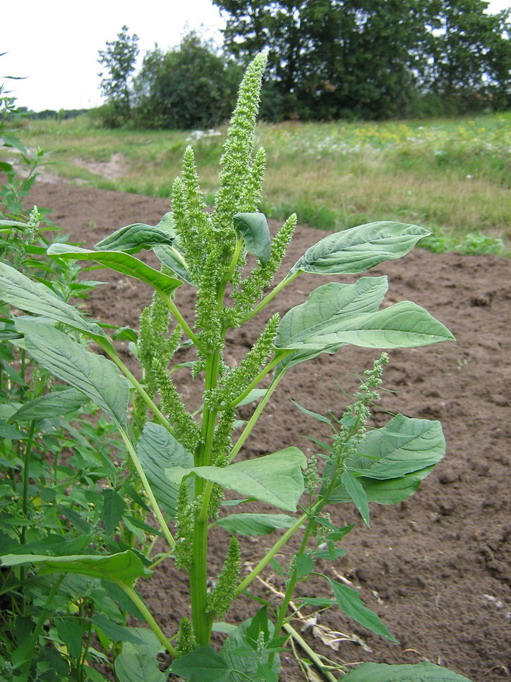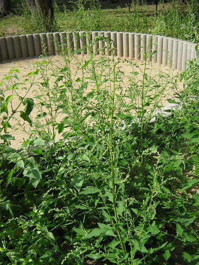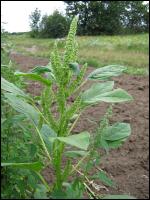Der sehr häufige, zur Familie der Gänsefußgewächse zählende Weiße Gänsefuß (Chenopodium album) ähnelt in seinem äußeren Erscheinungsbild der Beifuß-Ambrosie. Der wesentliche Unterschied sind aber dessen ungeteilten Blätter (siehe nächstes Bild). Auch der Bau des Blütenstandes weicht erheblich von der Beifuß-Ambrosie ab. Weitere ähnliche Pflanzen mit ungeteilten Blättern sind die Melden (Atriplex spec.).