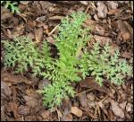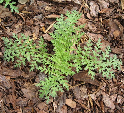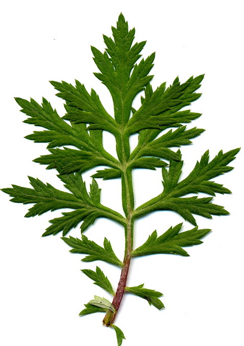 Blatt der Hundspetersilie (Aethusa cynapium). Im Unterschied zur Beifuß-Ambrosie glänzen die Blätter auf der Oberseite. Im Detail betrachtet weicht der Blattschnitt ab. Ambrosia Beim Zerreiben riechen die Blütter der Hundspetersilie entfernt nach Knoblauch. Die Frucht ist eine zweiteilige Spaltfrucht; die schmalen Körner sind etwa vier Millimeter lang und gerippt.