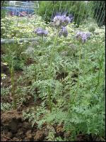 Die Phacelia (Phacelia tanacetifolia), auch Büschelschön, Bienenfreund, oder Bienenweide genannt, gehört zur Unterfamilie der Wasserblattgewächse (Hydrophylloideae) in der Familie der Rauhblattgewächse (Boraginaceae). Ihre Blätter ähneln denen der Beifuß-Ambrosie, insbesondere vor dem Erscheinen der Blüten. Bei erscheinen der Blüten ist aber ein Verwechselung kaum mehr möglich. Die Stängel sind hohl (bei Ambrosia gefüllt).